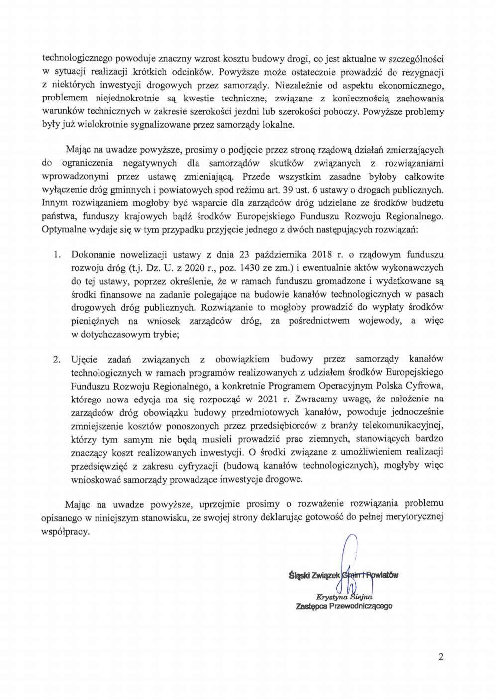 Stanowisko OPOS ws. budowy kanałów technologicznych przy drogach publicznych